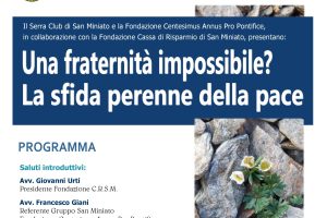 In un momento storico segnato da profondi conflitti e incertezze globali, la ricerca della pace non è solo un auspicio, ma un’urgenza che interroga le coscienze. Facendo eco alla costante preghiera della Chiesa — come testimoniato anche dalla recente Veglia per la Pace di Papa Francesco — il Serra Club di San Miniato e la sezione locale della Fondazione Centesimus Annus Pro Pontifice, in collaborazione con la Fondazione CRSM, promuovono un momento di riflessione di alto profilo. L’evento, dal titolo evocativo “Una fraternità impossibile? La sfida perenne della pace”, si terrà Giovedì 16 Aprile 2026… Continua a leggere