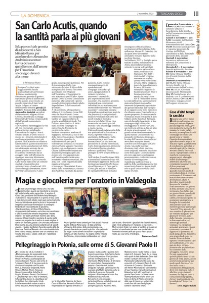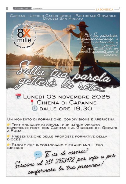 Il numero di questa settimana: Abbonamenti al settimanale diocesano Abbonamento a Toscana Oggi (cartaceo o digitale): Abbonamento Annuale Cartaceo - ToscanaOggi Abbonamento Annuale Digitale - ToscanaOggi Numeri archiviati più recenti ... La Domenica del 5 Ottobre 2025 La Domenica del 28 Settembre 2025 La Domenica del 21 Settembre 2025 La Domenica del 14 Settembre 2025 La Domenica del 7 Settembre 2025 Archivio “La Domenica” per anno 202520242023202220212020201920182017