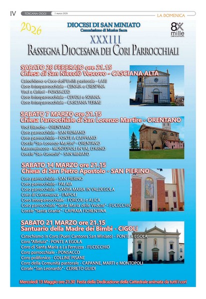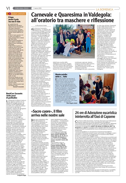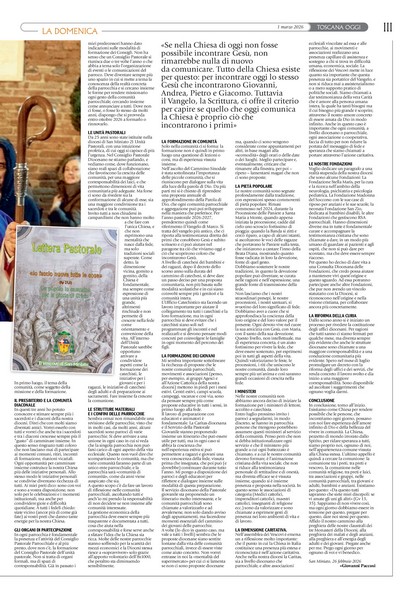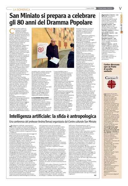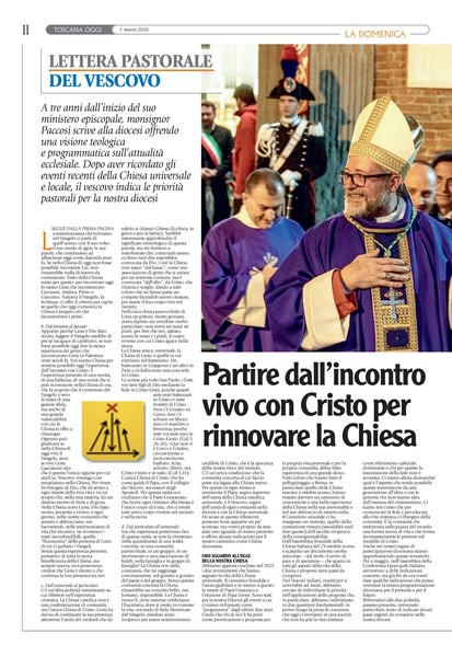 Il numero di questa settimana: Abbonamenti al settimanale diocesano Abbonamento a Toscana Oggi (cartaceo o digitale): Abbonamento Annuale Cartaceo - ToscanaOggi Abbonamento Annuale Digitale - ToscanaOggi Numeri archiviati più recenti ... Caritas: i giovani scendono in campo La Domenica del 1° Febbraio 2026 La Domenica del 25 Gennaio 2026 La Domenica del 18 Gennaio 2026 La Domenica del 11 Gennaio 2026 Archivio “La Domenica” per anno 2026202520242023202220212020201920182017