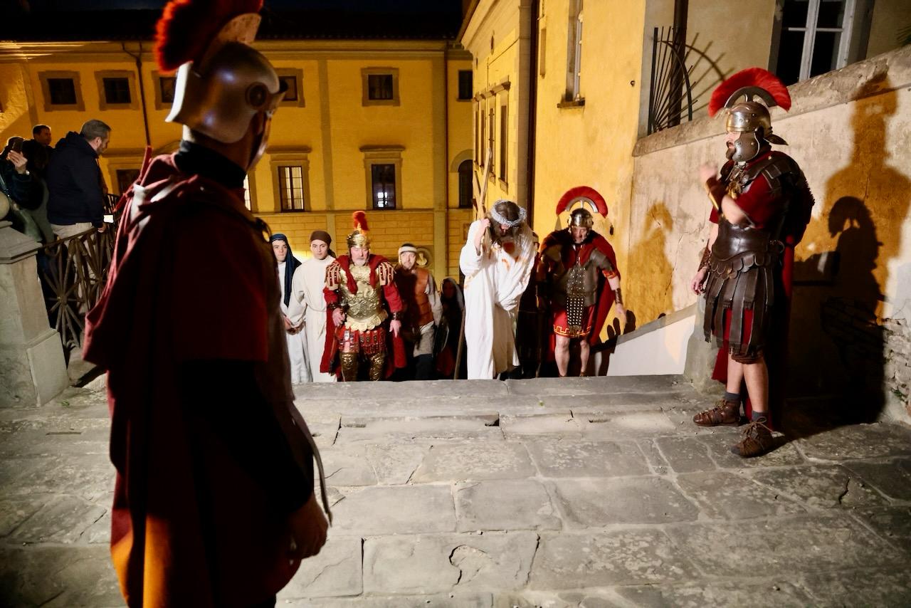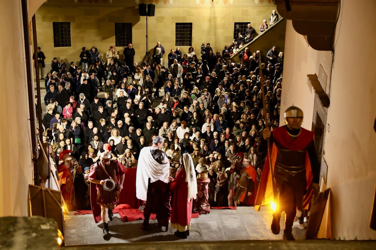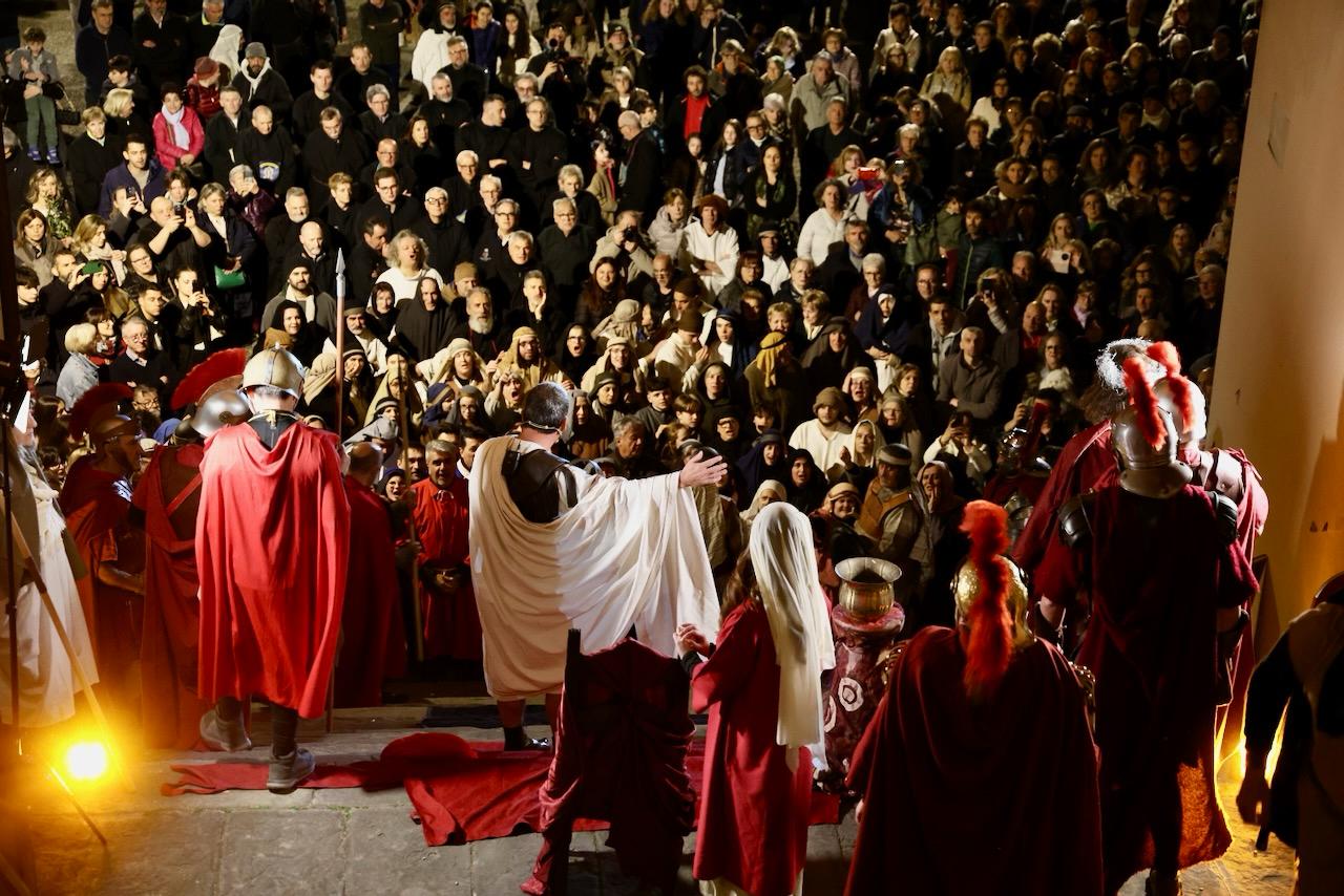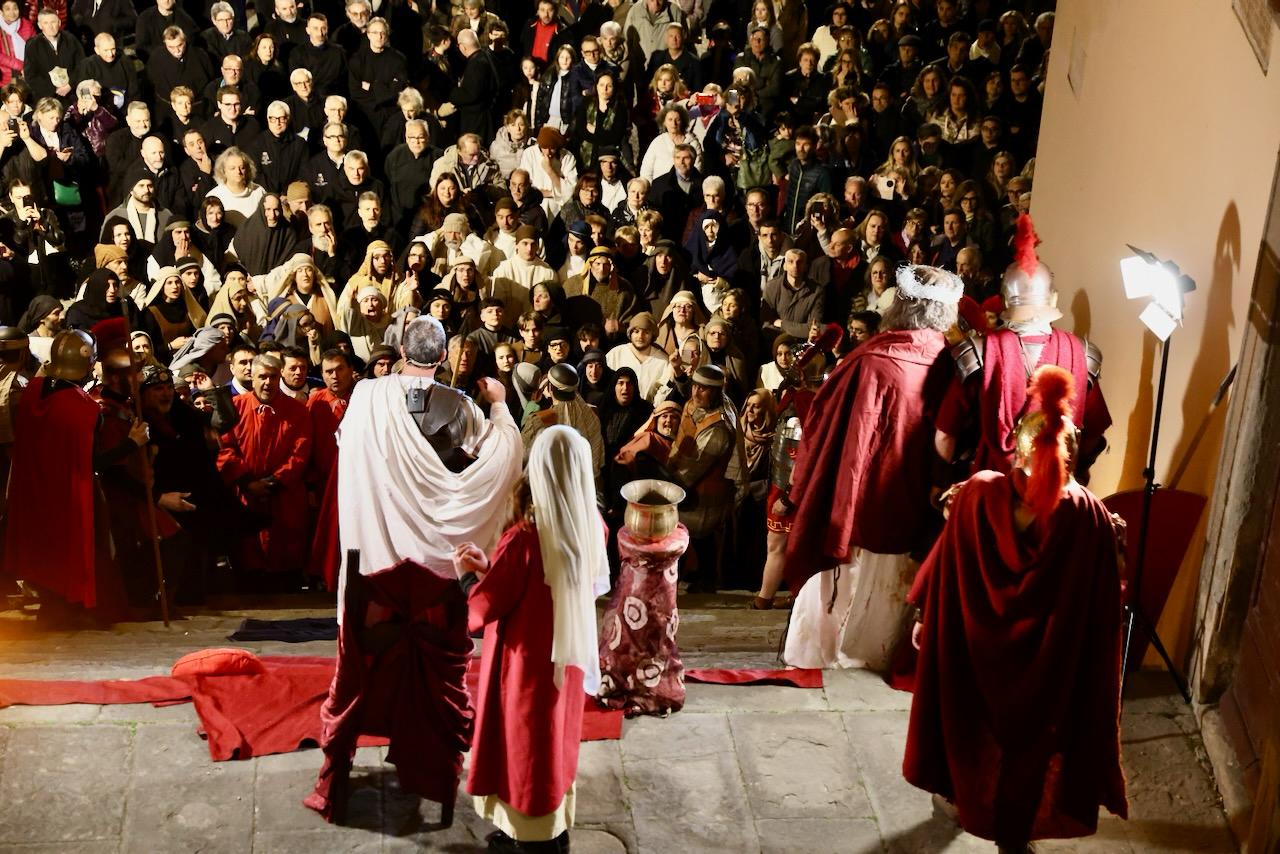Grande partecipazione alla prima rappresentazione vivente della “Passione” a San Miniato (Pisa) dove oltre duecento tra figuranti e attori hanno messo in scena gli ultimi momenti della vita terrena di Gesù.
