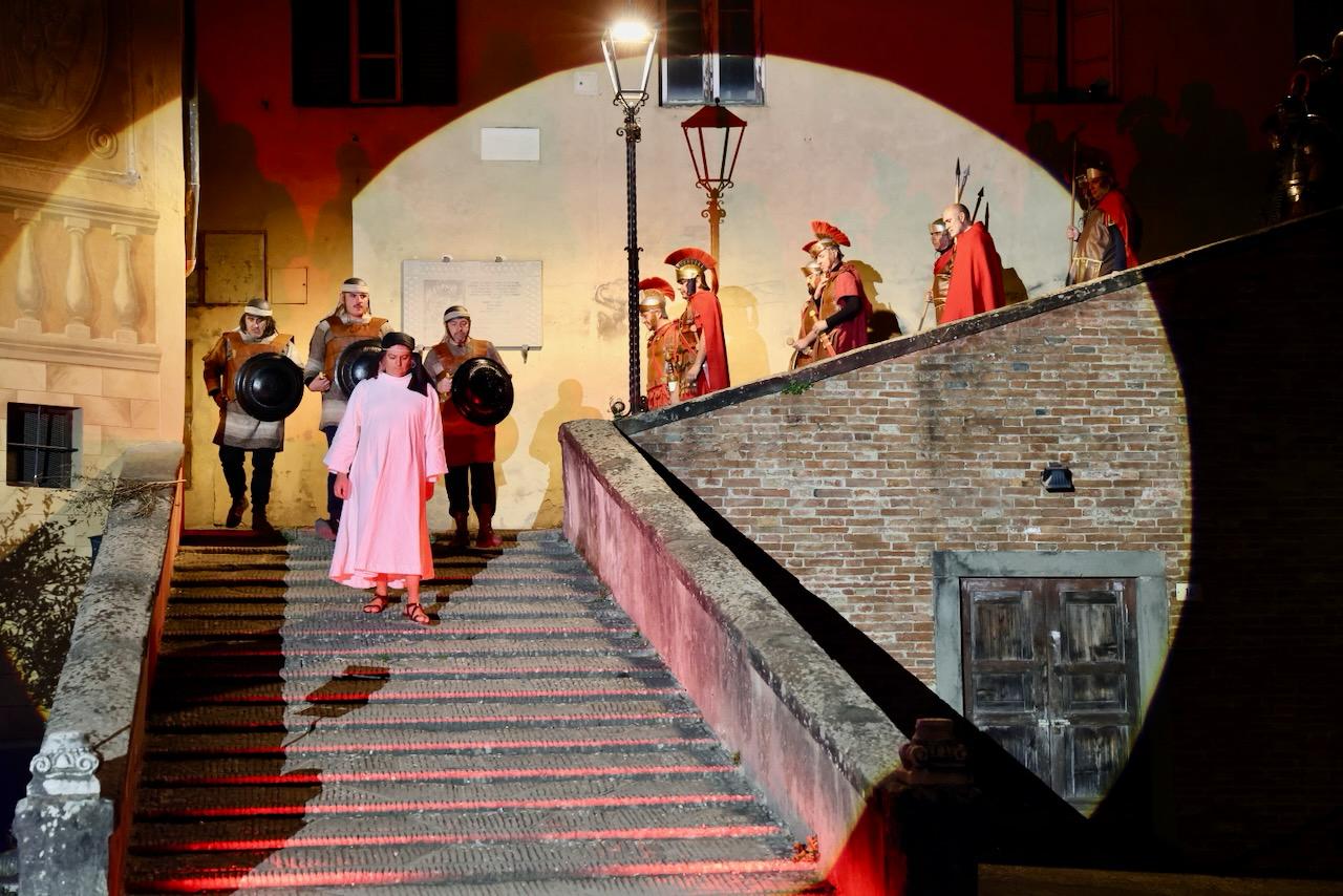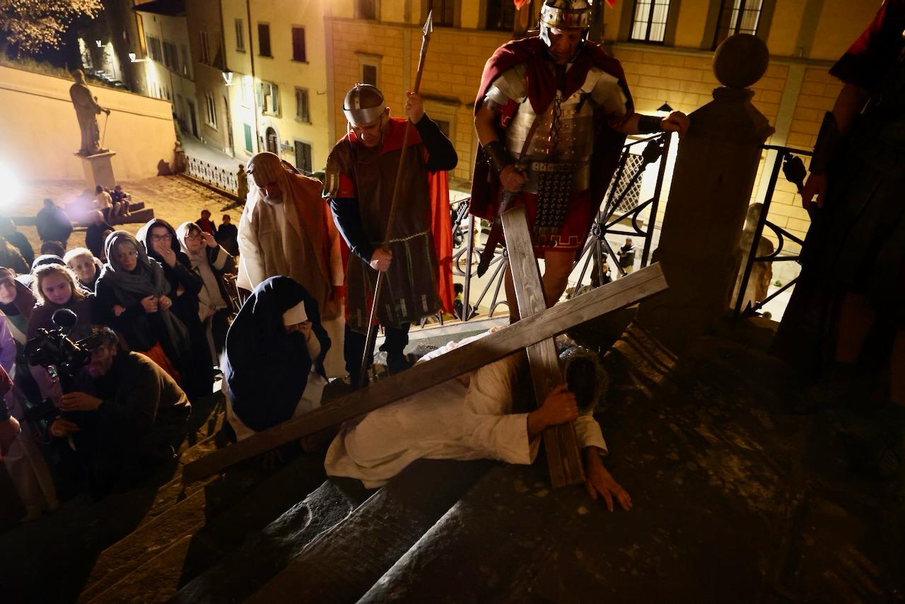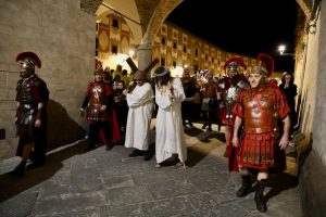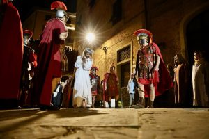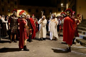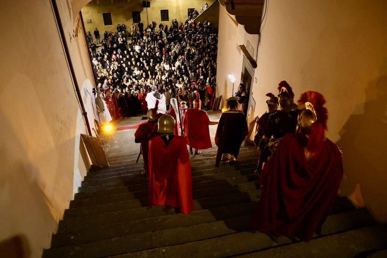 Grande partecipazione alla prima rappresentazione vivente della “Passione” a San Miniato (Pisa) dove oltre duecento tra figuranti e attori hanno messo in scena gli ultimi momenti della vita terrena di Gesù.