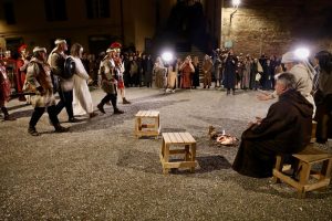 La rappresentazione era stata organizzata dalla diocesi di San Miniato e dall’Associazione nazionale Città dei Presepi.