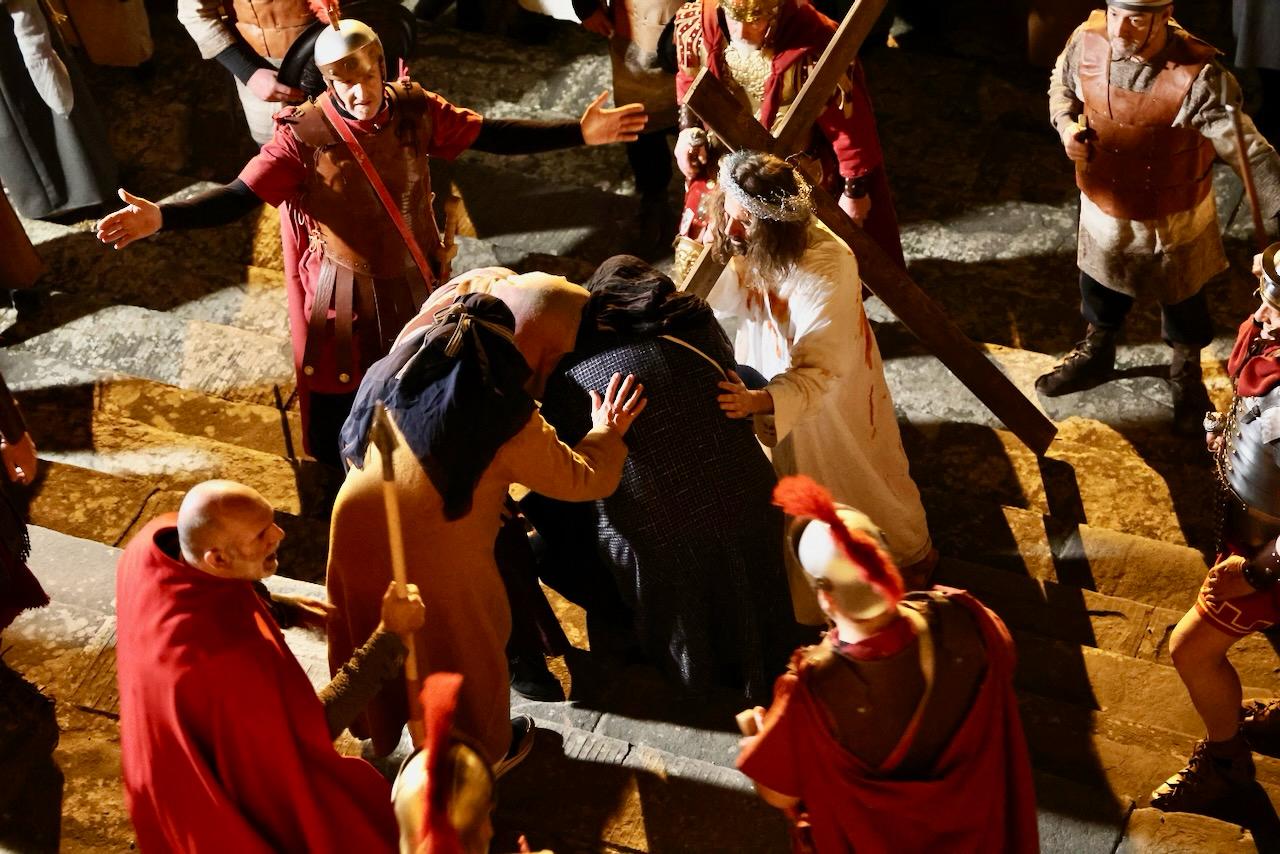 Nelle quasi due ore di rappresentazione, la città ha offerto uno scenario naturale veramente suggestivo che ha accompagnato il pubblico sulle varie scene. È stato un incontro tra devozione, pietà popolare, tradizione, fede e identità dove non sono mancati i momenti di commozione in cui il pubblico si è sentito coinvolto.