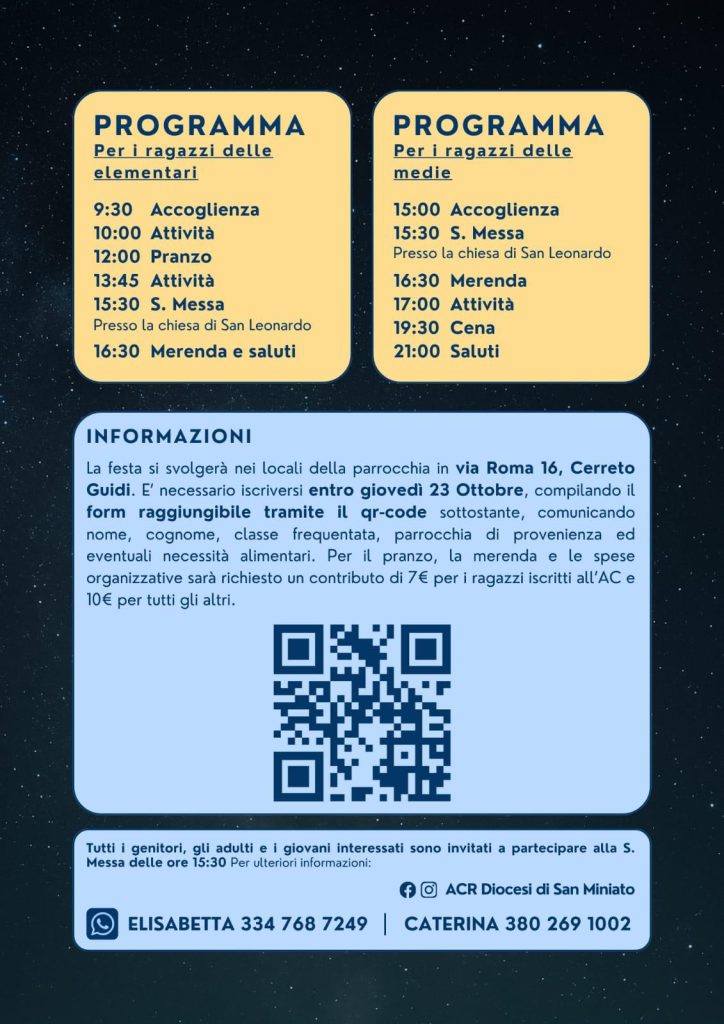 Appuntamenti e segnalazioni ACR Festa del Ciao domenica 26 Ottobre Descrizione: Inizio: 26/10/2025 09:30 Fine: 26/10/2025 21:00 Categorie: Appuntamenti e segnalazioni Città: San Miniato Regione: Toscana Paese: Italia