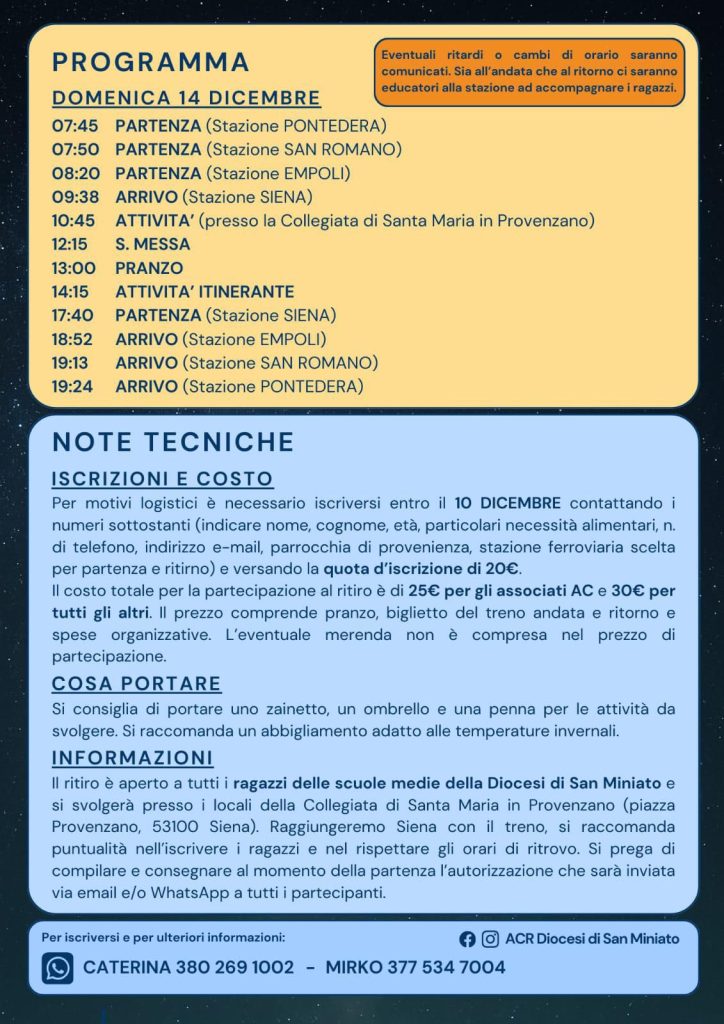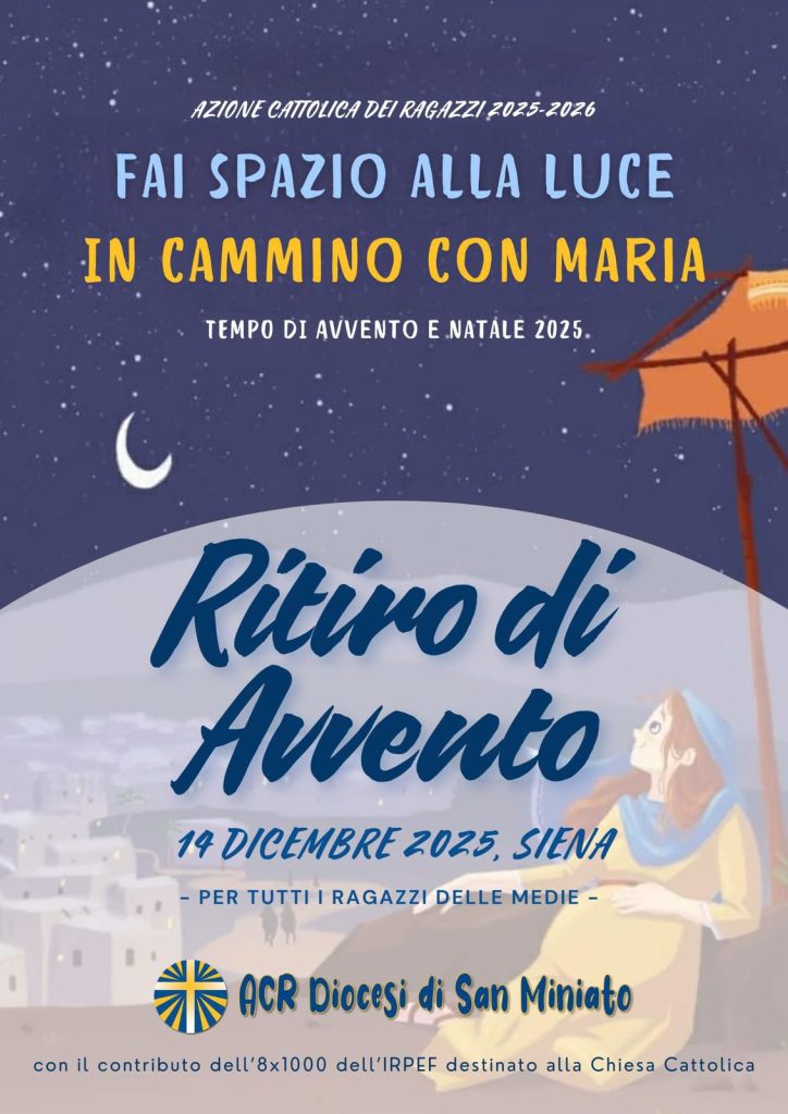 Appuntamenti e segnalazioni ACR: Ritiro Avvento 2025 domenica 14 Dicembre Descrizione: Inizio: 14/12/2025 07:45 Fine: 14/12/2025 20:00 Categorie: Appuntamenti e segnalazioni Città: San Miniato Regione: Toscana Paese: Italia