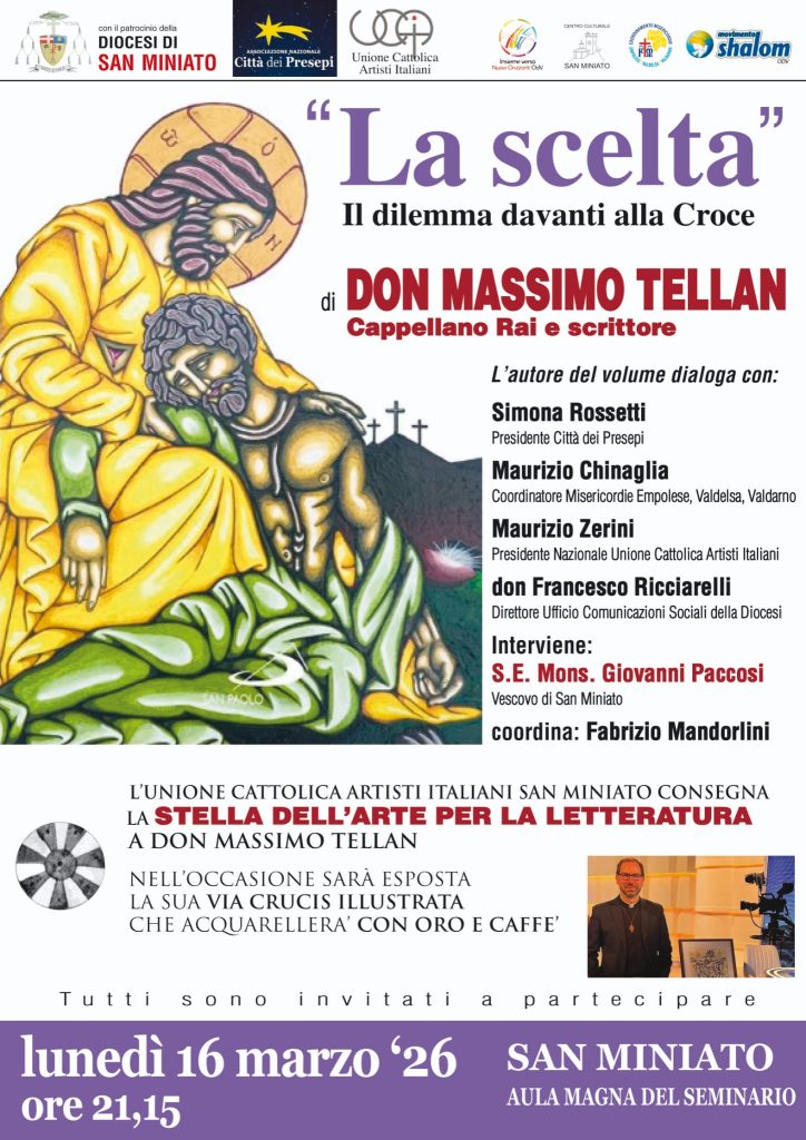 Appuntamenti e segnalazioni “La scelta” Il dilemma sotto la Croce. lunedì 16 Marzo Descrizione: Inizio: 16/03/2026 21:15 Fine: 16/03/2026 23:00 Categorie: Appuntamenti e segnalazioni Città: San Miniato Regione: Toscana Paese: Italia