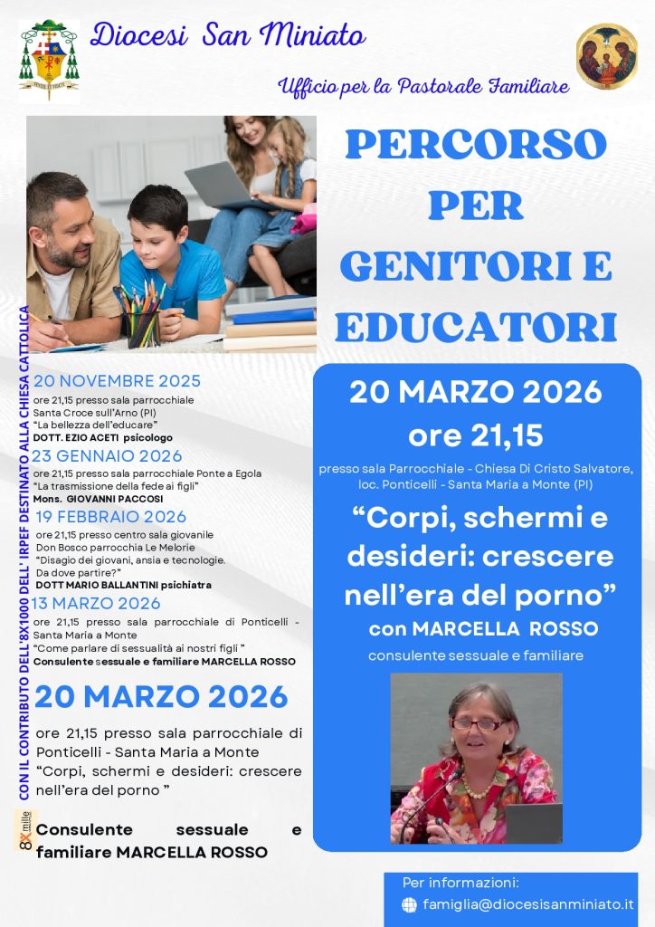 Appuntamenti e segnalazioni Pastorale Familiare: Percorso per genitori ed educatori venerdì 20 Marzo Descrizione: Inizio: 20/03/2026 21:15 Fine: 20/03/2026 23:00 Categorie: Appuntamenti e segnalazioni Città: San Miniato Regione: Toscana Paese: Italia